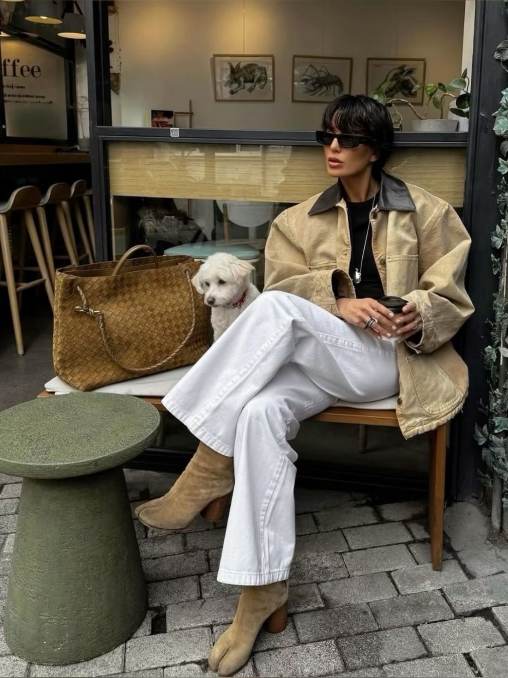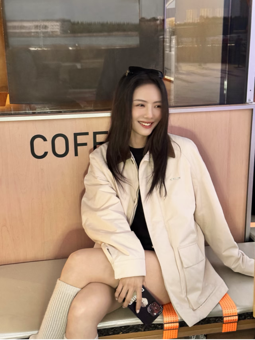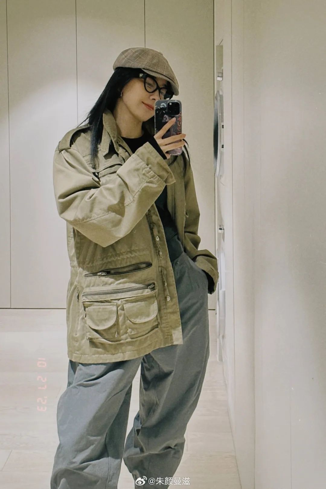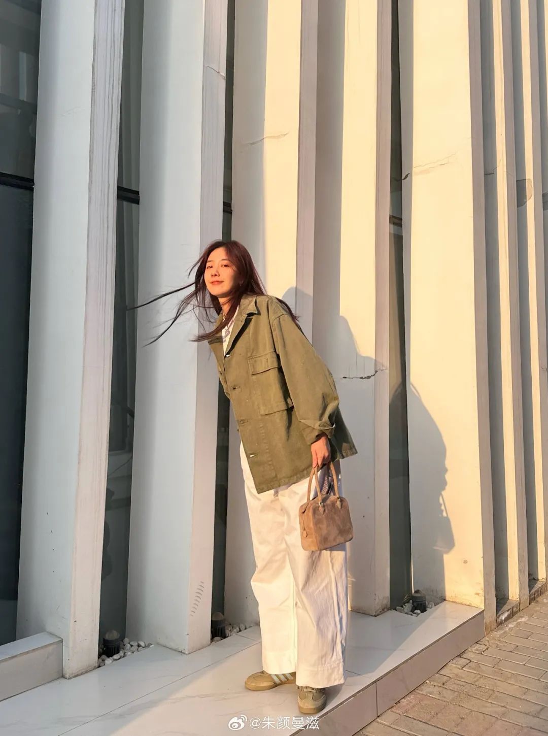 卡其色工装外套通常会是大部分的首选,经典百搭,又避免深色调的沉闷。像郑秀晶用白色中和夹克的厚重感,很适合日常穿搭的借鉴,春秋搭配白短裤,秋冬搭配白色长裤,轻松不费力的时髦。