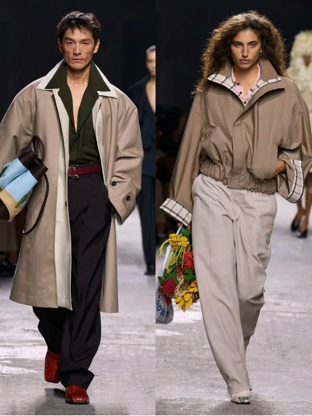 除了经典的卡其色,低饱和度的墨绿色、藏蓝色也是不易出错的色调选择。糅以宽松的线条、阔肩,模糊性别界限,飒爽又洒脱。
