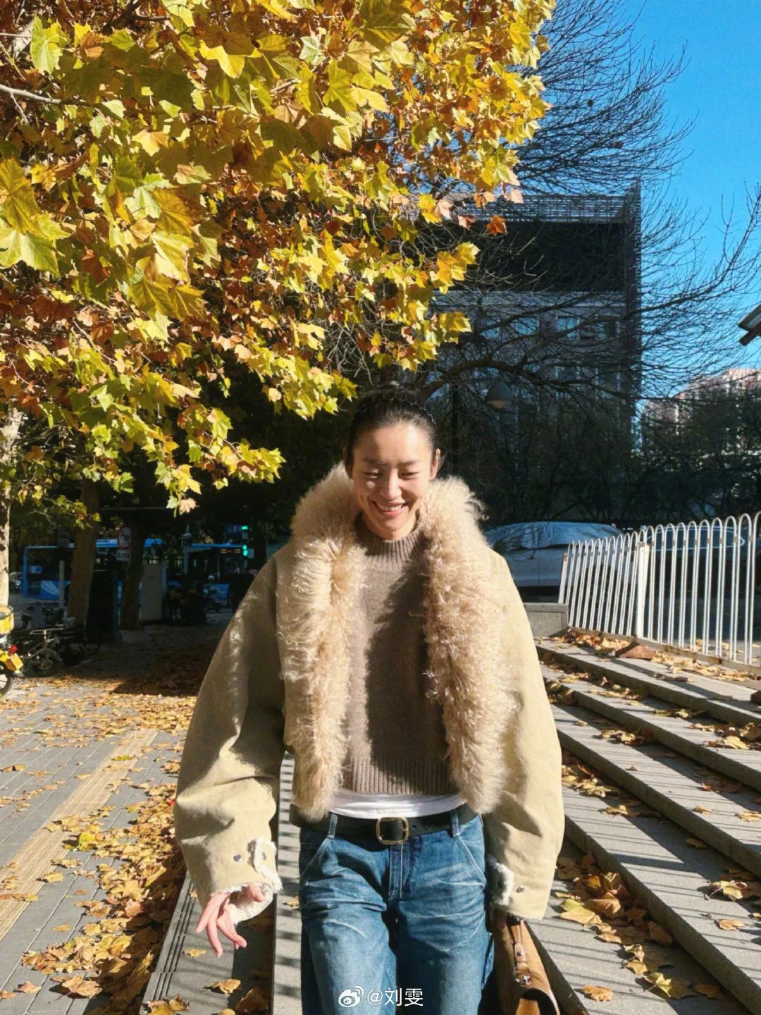 刘雯最近也更新了一组工装look,一圈毛毛领适配降温季节,谁能拒绝毛毛领的包裹呢?