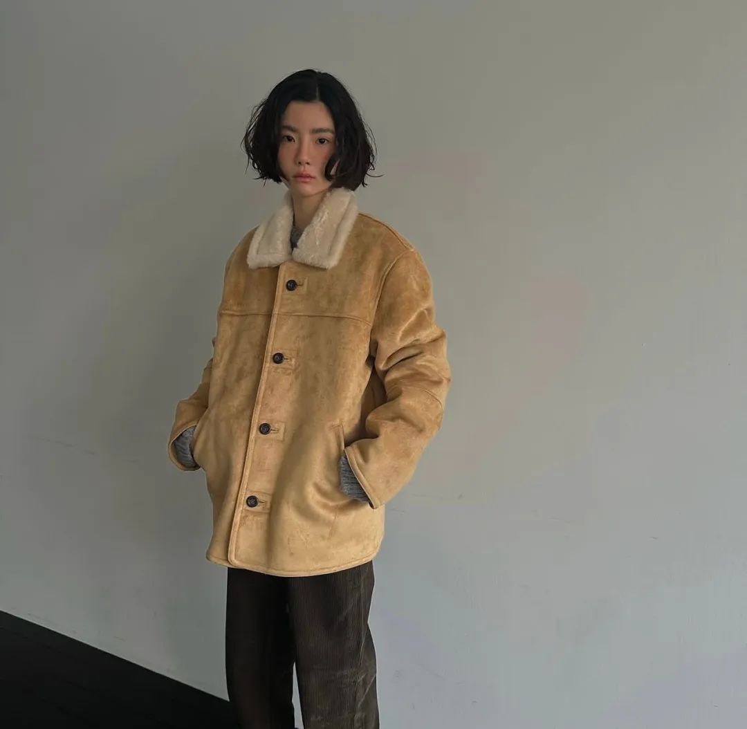 短发天然的比长发更少了些讨好感,多了几分疏离。微卷短发正好介入清冷和小性感质之间,搭配偏中性风的翻领夹克很好看,既有少年感,又有几分女人味的娇俏。即使是搭配偏性感的元素也依然能维持冷调氛围。
