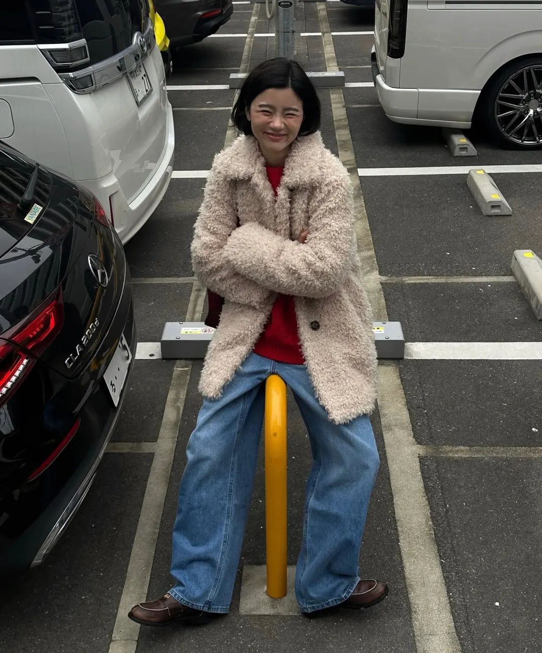 这种齐嘴角的偏分短发就比较日常。黑发+偏分+无刘海的组合维持住了整体的清爽。还蛮适合小个子姐妹,搭配这种量感大的毛绒外套也不会显累赘。