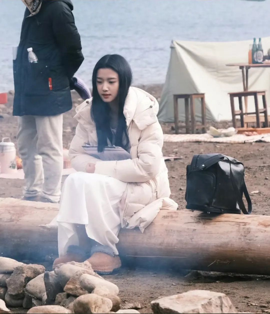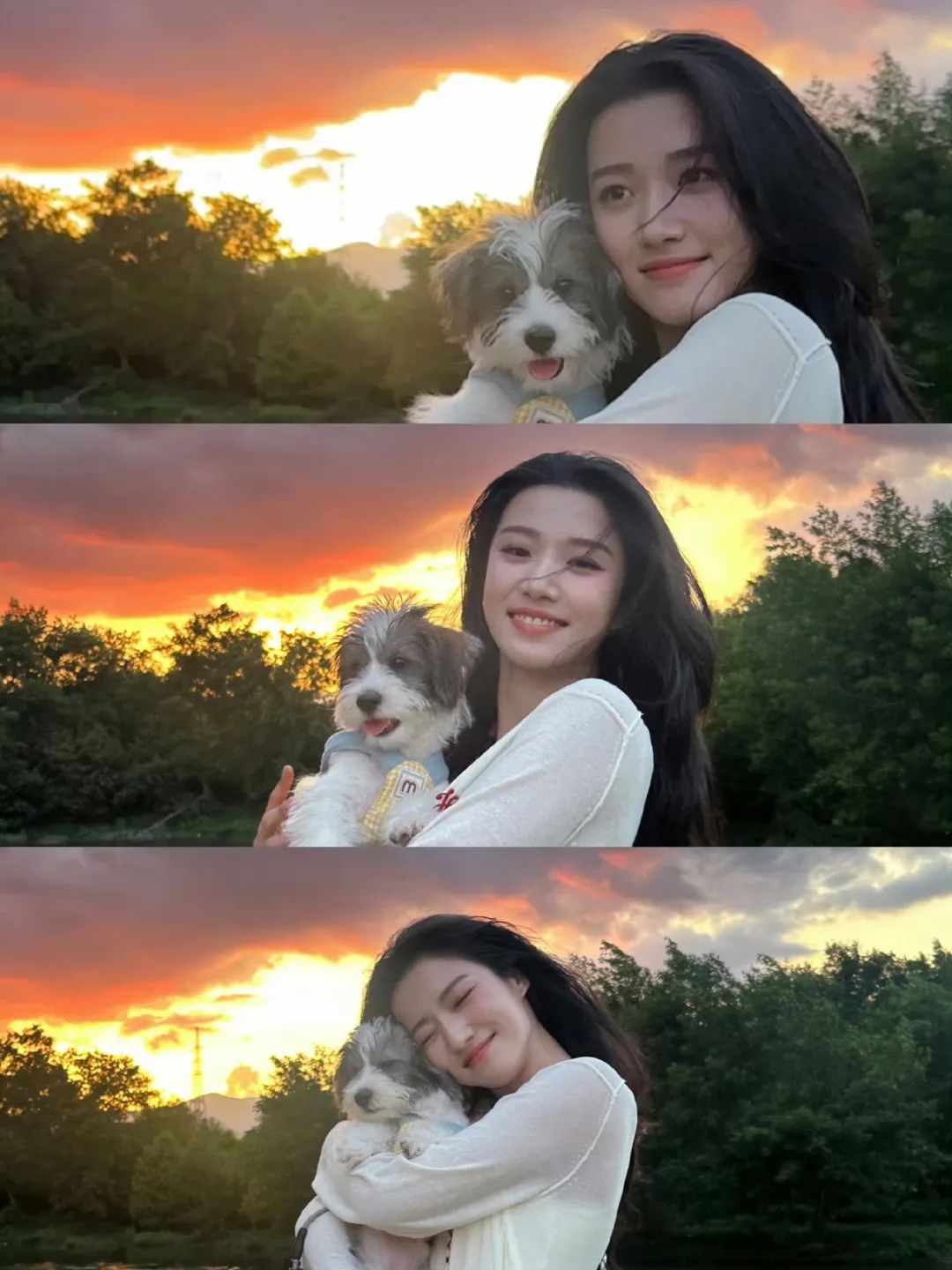 一身白衣,一头长发,在背景晚霞的衬托下,简直就是天选韩剧女主。