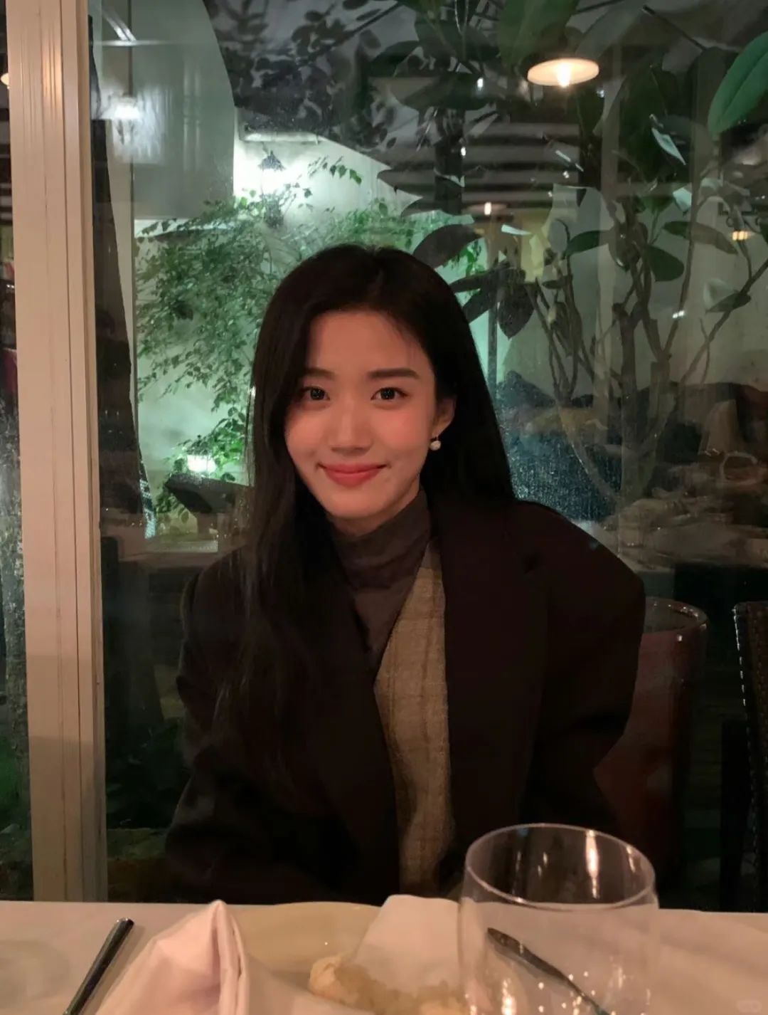对于淡颜姐妹来说,凸显气质很重要。整体的氛围其实比单纯修饰五官更有美女感。沉稳的黑色大衣,搭配柔顺的黑长发一下就让整个人的气场沉淀下来,内搭不抢眼的温柔灰棕色,根本就是归国白月光真人版。