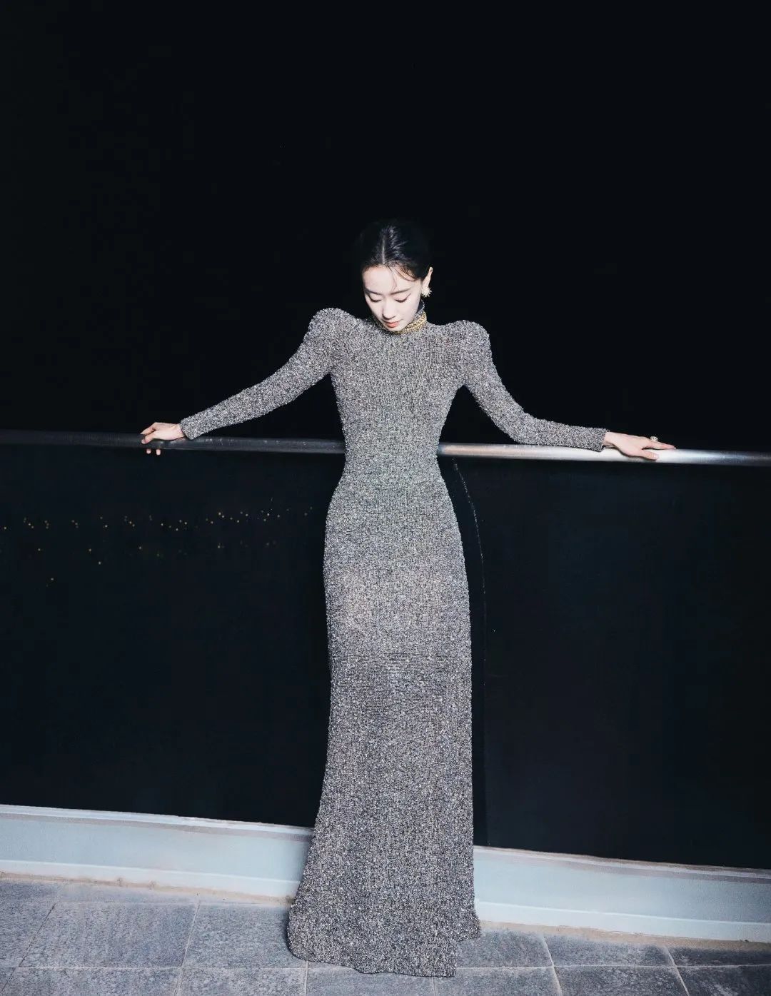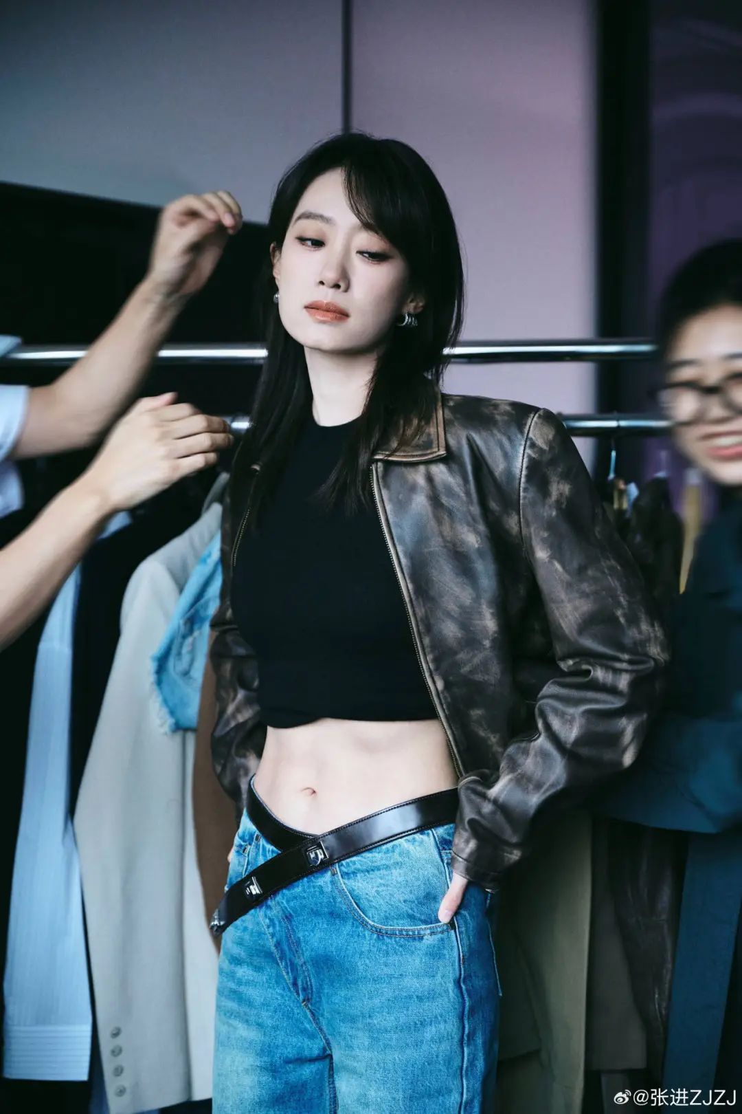 利落斜肩的挺括上衣搭配裤装,好在一定的露肤度和湿发造型加持,延续一贯的飒爽,却不显乏味~