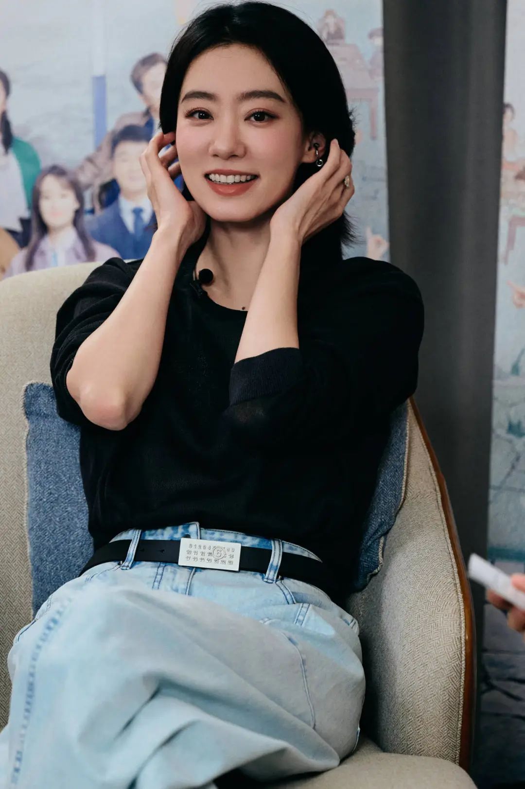 除了外套这种挺括单品,基础款式的针织也是她营造飒爽气质的核心单品之一。黑、灰色圆形经典款针织衫搭配浅色牛仔裤,清爽、质感在线。