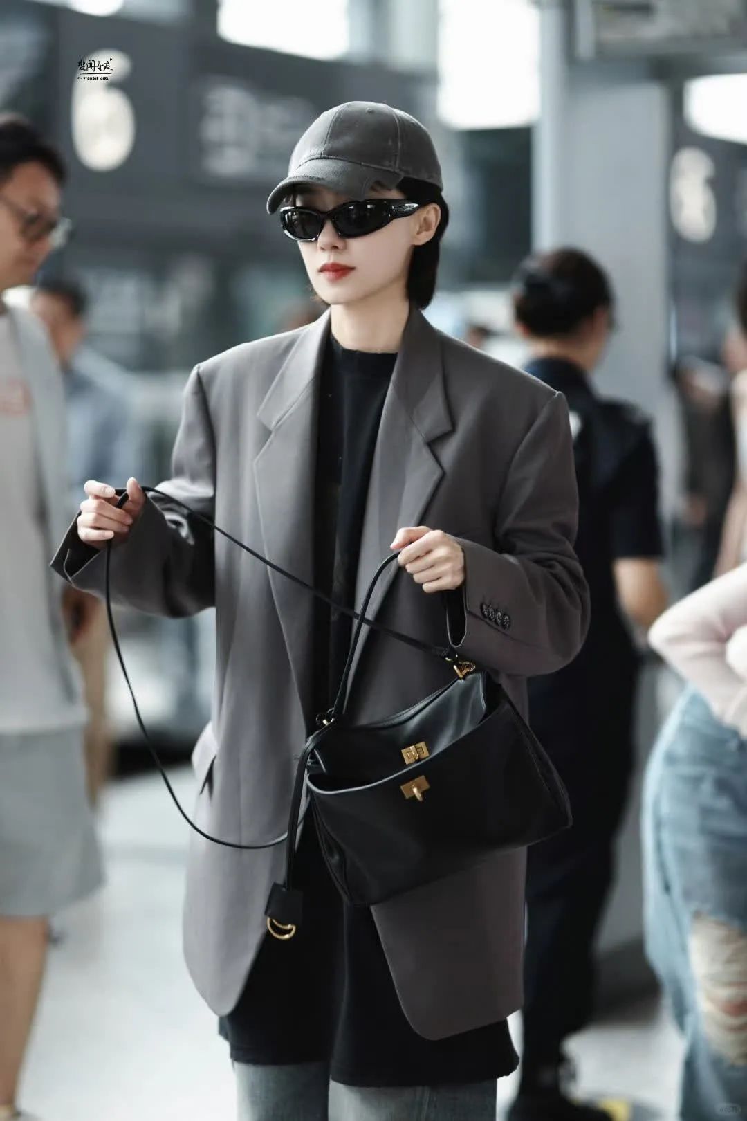 把内搭换成oversizedT恤,又能穿去走机场,细节不失精致。