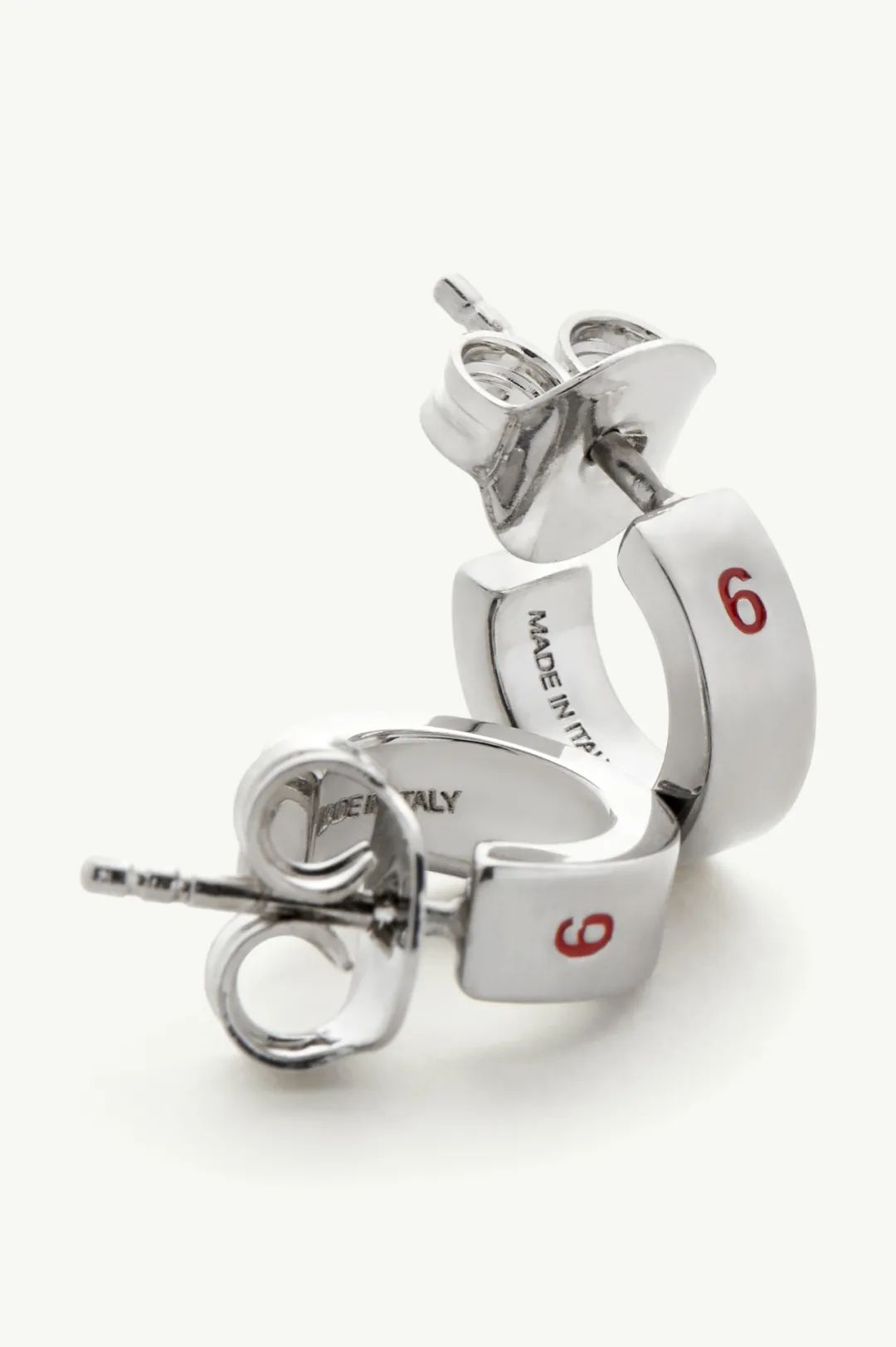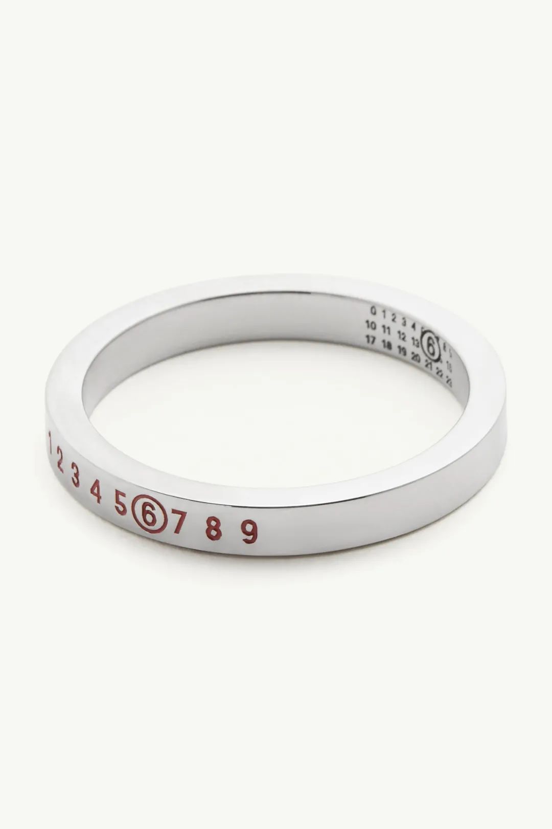 银色金属首饰则以数字“6”为设计亮点,包括手镯、戒指、圆形吊坠项链以及小号圆圈耳环等。前卫风格的外观造型,将圆形意象与MM6标志性的数字标签元素巧妙融合,展现独特精致美感。