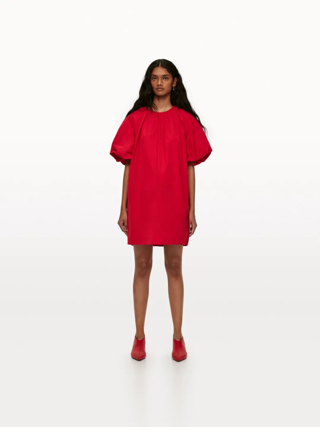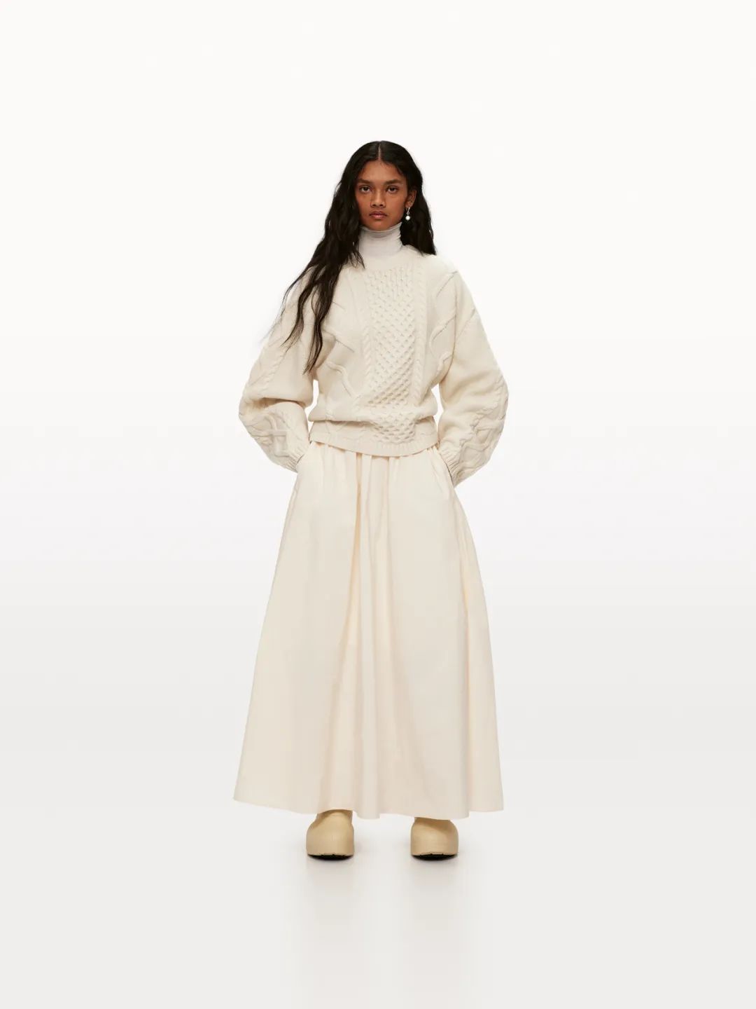 延续实穿主义美学,ARKET焕新节日着装灵感。女装系列探索冬季衣橱的丰富层次与多样风格,羊毛绞花针织衫搭配A字仿缎面半身裙,精致细节勾勒都市风格剪影;红色泡泡袖连衣裙饰以尖头小猫跟短靴,轻松营造聚会瞩目造型。
