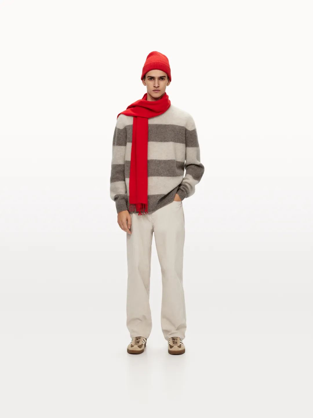 男装系列则包含羊毛条纹针织衫、直筒灯芯绒长裤、工装风毛领夹克外套等经典单品,兼具保暖功能与都市型格,为绅士衣橱提供实用之选。