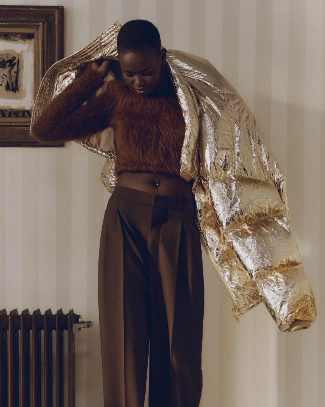 镜头视角追逐姿态变化,服装亦随之转换,诉说主角如何汲取往日灵感,融入当下风格。假日季慵懒漫长的白昼交接璀璨闪耀的夜晚,传统着装法则于此相互碰撞。风格独具个人特质:此刻温馨惬意,下一刻华丽耀目,盛装奔赴晚宴与派对。柔软莫卡辛鞋与拖鞋、长款皮革手套、亮面布洛克鞋、Plume运动鞋与及膝靴自如驾驭各类场合。Arcadie、Aventure、Penny和Wander手袋伴以精巧饰件,装扮欢庆时节。