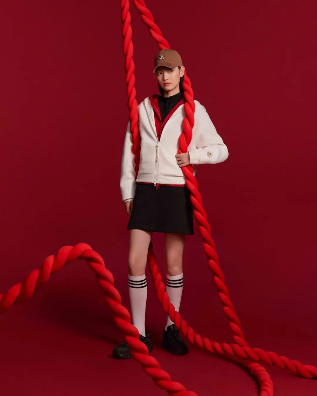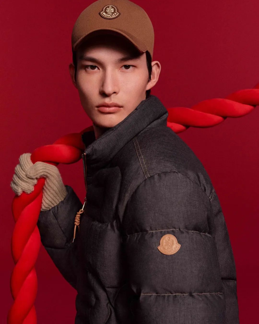 蛇年系列成衣以创新设计再现灵蛇祥瑞的曼妙姿态,夹克与马甲采用曲线绗缝,拉链拉头与棒形纽扣则呈现绳结造型,搭配融入中国结元素的新款盟可睐Moncler品牌标识。此款品牌标识以多种设计形式亮相,拉链连帽卫衣与运动裤饰以精致的结状刺绣标识,T恤则点缀别具一格的盘蛇形标识。