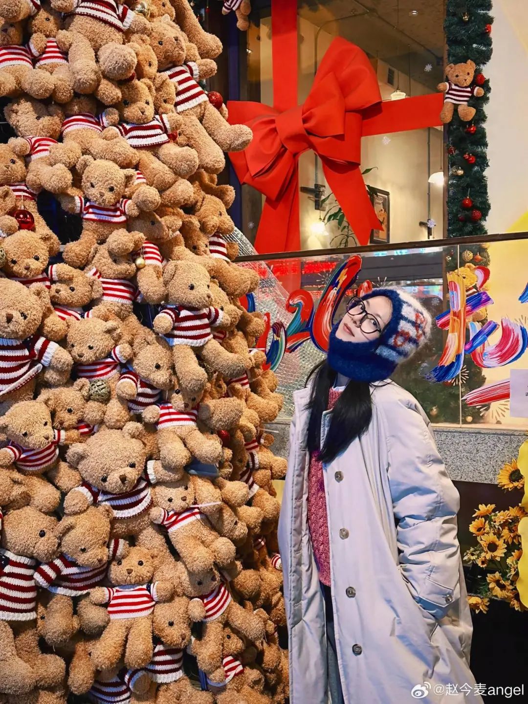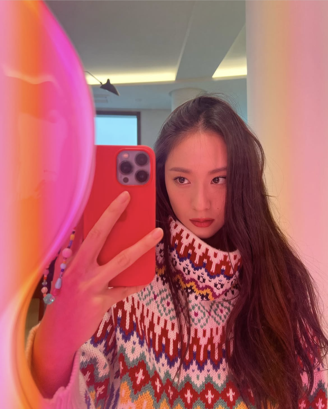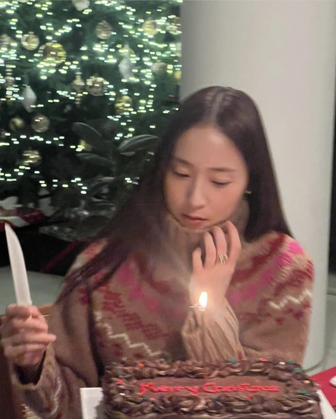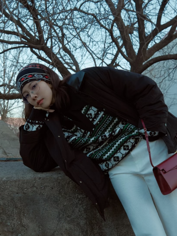 每到年底的节日氛围,正适合“丑毛衣”聚会!郑秀晶在这个赛道就很有心得,比如昨日圣诞节,复古费尔岛毛衣又上线了,玫红和棕色的拼接和蛋糕的配色刚好呼应,节日氛围充盈整个的细节~