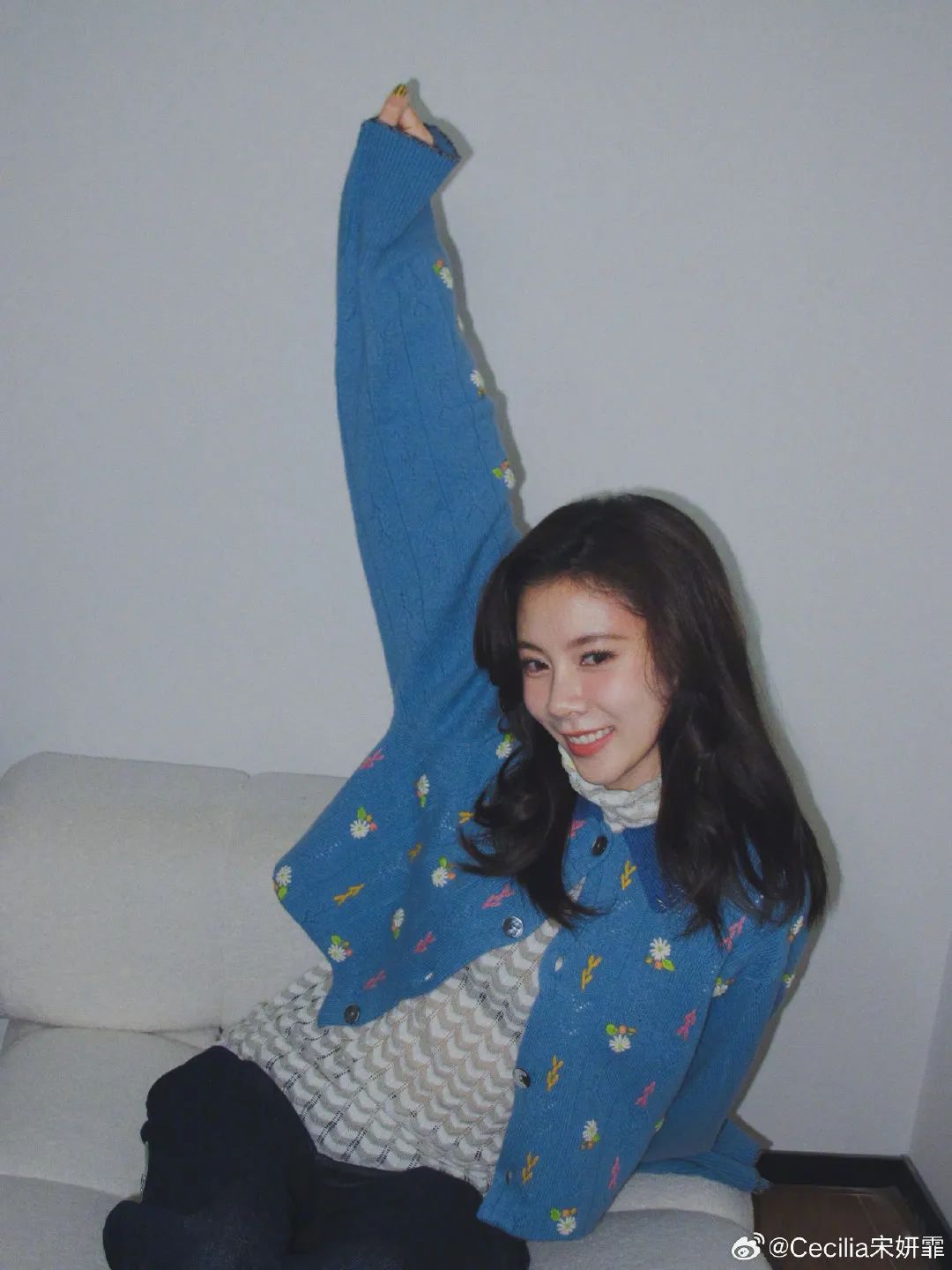 像钟楚曦用小花毛衣搭配白裙,看起来就很“乖”;宋妍霏则是将彩色贯彻整个冬天,搭配常见的黑裤子、棕裤子,彩色小花让人感受到溢出屏幕的生命力~