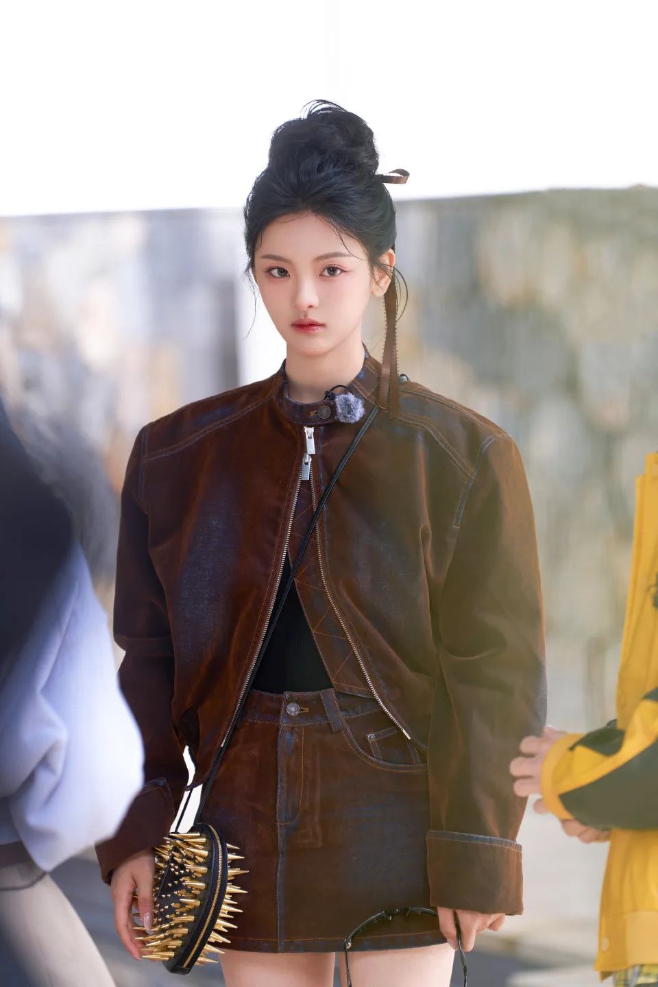 “双开门”的不止大衣,还有皮衣单品。杨超越上身的廓形皮衣套装极具视觉冲击,展现出酷飒的一面。对了,这种肩部大廓形的单品从视觉上来说,真的是很显脸小!