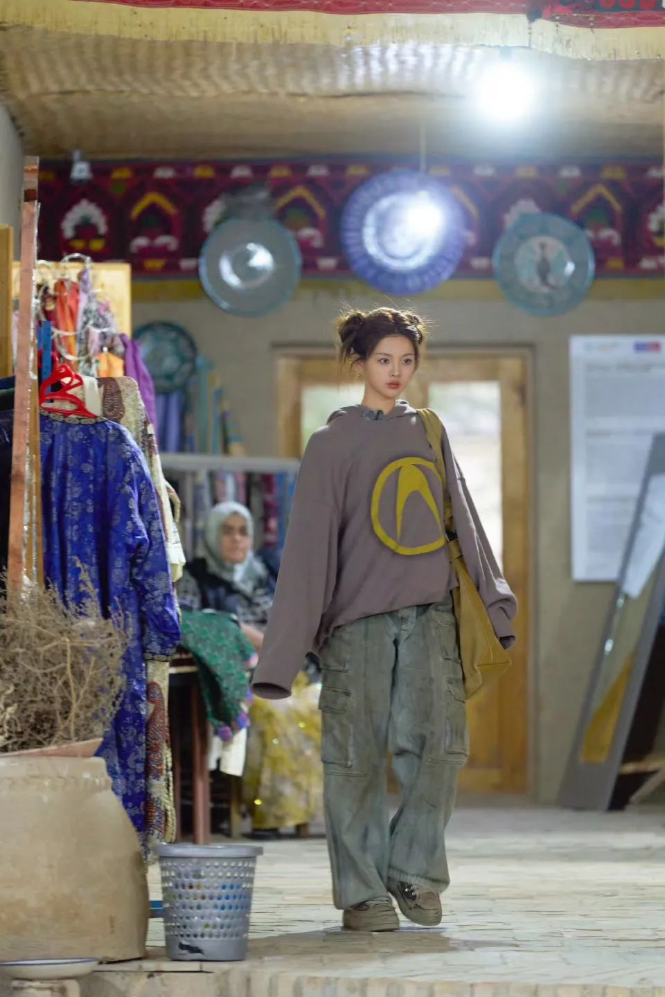 为什么日常我们格纹裤穿起来很“睡衣”?杨超越的区别在于,她很会把控整体风格的平衡。格纹裤搭配西装外套和谷仓夹克将休闲升级为潇洒,她还另外用红色发饰点缀,充满活泼趣味。