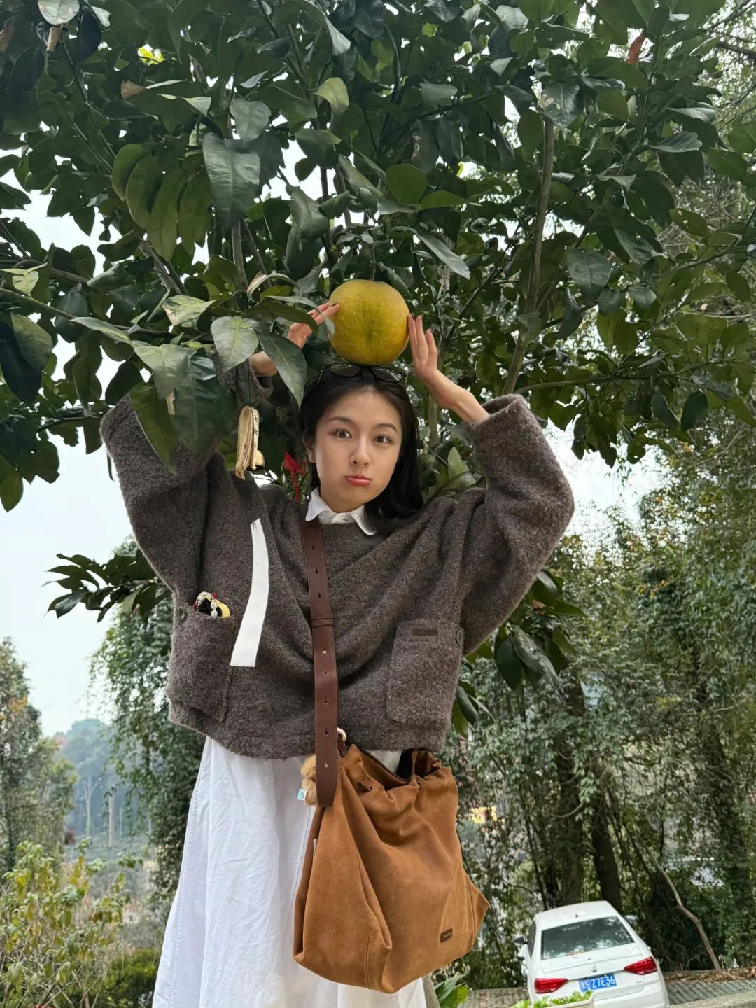 外套有了,毛衣也跟上!纯色的短款毛衣搭配今年火热的麂皮包袋,这不是妥妥的校园剧女主角?杂色的毛衣不管是单穿还是内搭都很适合,慵懒十足。