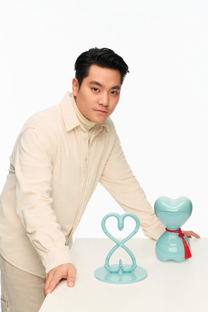 艺术家王令尘表示,“我对瓷器有一种痴迷,它跟中国文化有着深刻的绑定,其独特魅力在于它的未知性,我们无法预知它的最终成型。蛇在中国传统文化中象征着创造、蜕变和财富。我的设计借鉴了蛇的灵动蜿蜒之姿,首尾相衔,汇成无穷,既是两颗心靠在一起,也代表着无限的爱——是爱情、亲情和友情,也是对自己的爱。新年团聚,爱在一起。”
