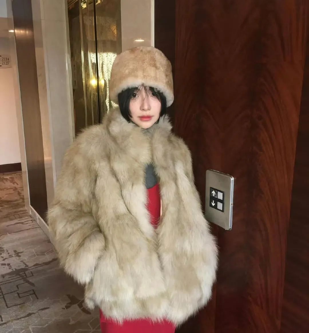 不会搞头发又担心头发贴头皮影响皮草的美貌发挥?帽子当然要安排上。可以选择今年很热的毛毛棒球帽,视觉上真的让颞部饱满了不少,一秒头包脸,,棒球帽的款式也比较好驾驭。