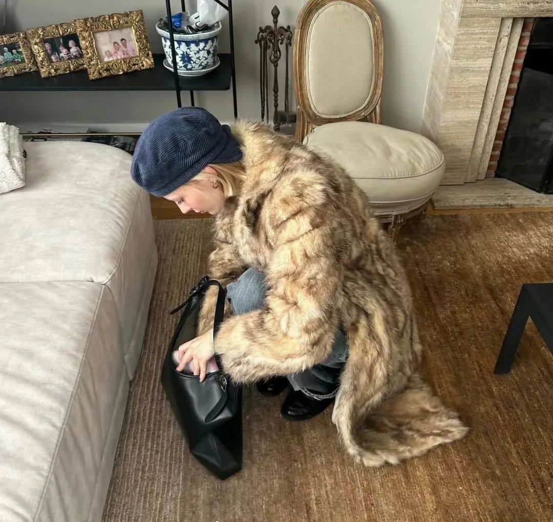 因为皮草单品的量感相对较大,搭配大包包也会更衬整身的气场,看起来更有随性的自由感。其实同样的思路,搭配一些更偏中性的单品,都会让皮草穿搭更有趣,也更偏休闲而不是传统意义上的贵妇风。