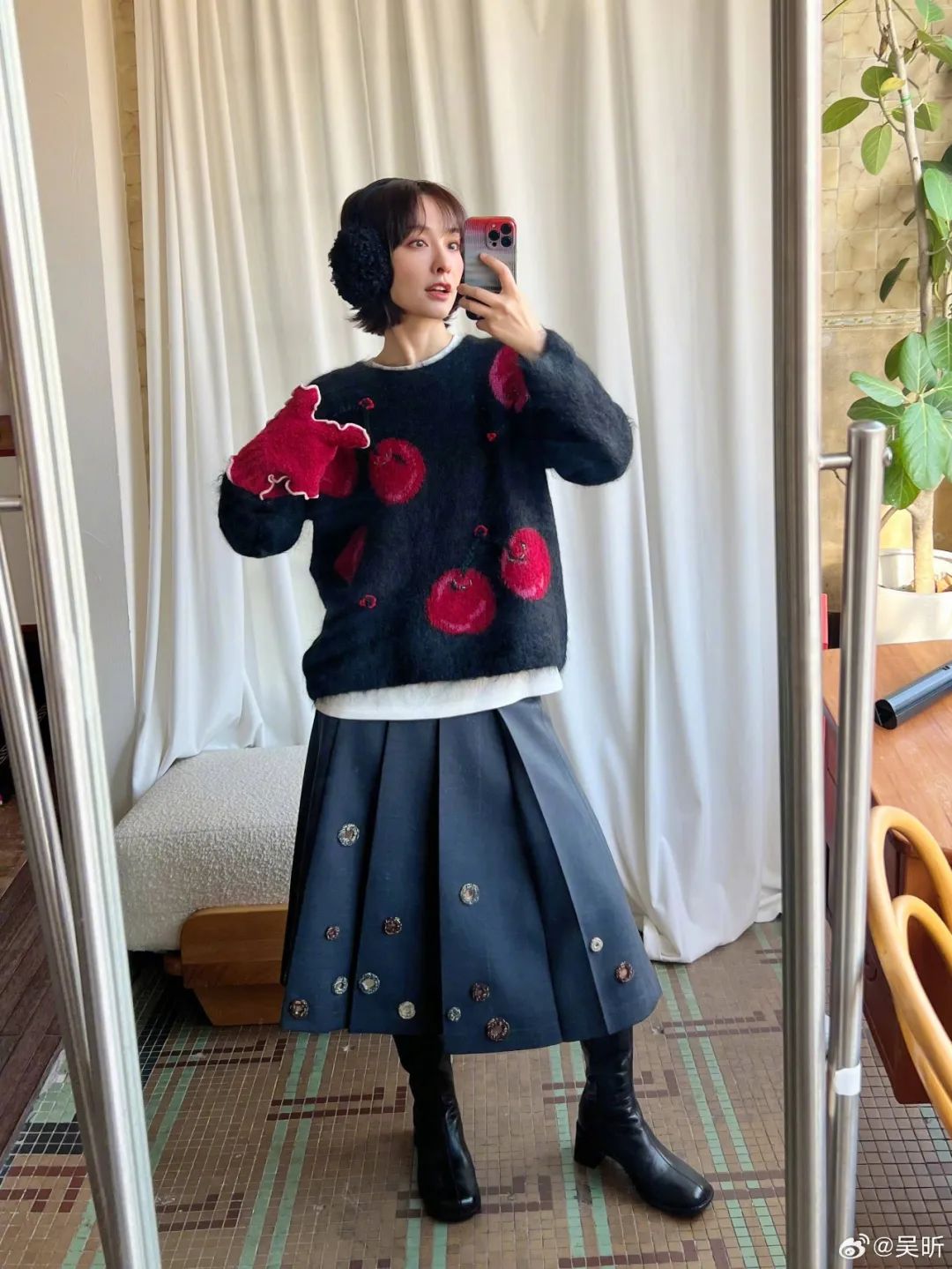 沈梦辰的2套红毛衣轻松拿捏“韩女风”和“女大风”,前者搭配云朵半裙和筒袜,韩里韩气的少女既视感,关键红色开衫还很显白~