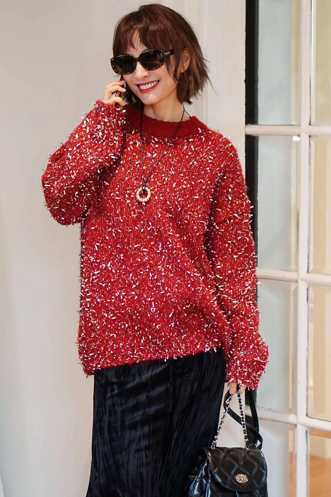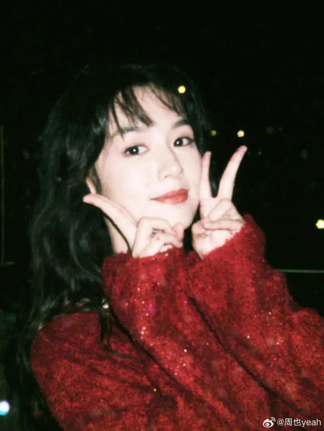 红色和亮片组合,很难不成为人群中的焦点!比如周也这件毛衣由于blingbling的亮片衬得整个人都越发亮眼,轻松拿捏高光时刻!