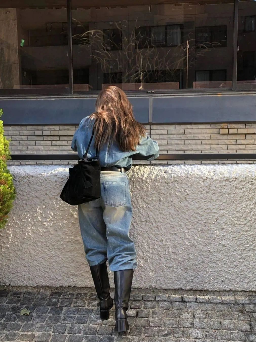 尤其是宽松的阔腿裤装和靴筒之间也能形成上紧下松的效果,上半身即使已经选择了宽松的单品也没关系,视觉上看起来依然不乏利落感。