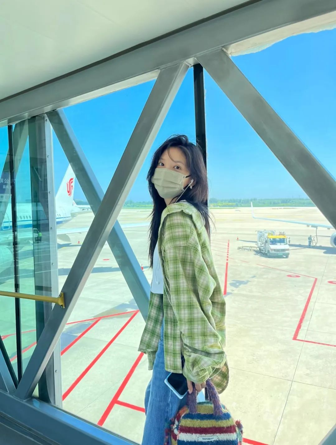 格纹款衬衫章若楠的衣橱也有不少,但格纹稍有不慎就容易显得呆板。所以选择的时候,可以尽量选择宽松款式,增加松弛感,这件草绿色的宽松格纹衬衣很有早春味。