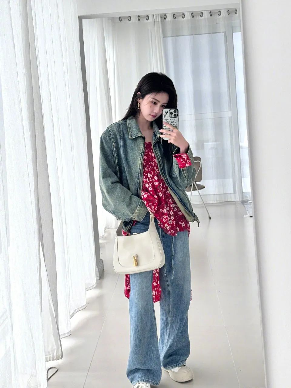 牛仔外套太能代表春天了!像白鹿这样搭配碎花内搭,更有春日的明媚气息;下半身用牛仔裤来做平衡,柔和酷两种风格形成有趣的对比。