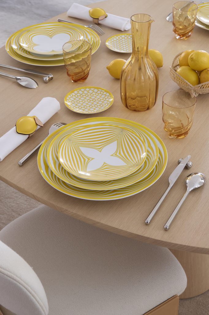 从意大利卡普里岛丽日普照的灿然魅力采撷灵感,Dolce Vita系列餐具含蕴清新气韵,可令宾客品味无与伦比的柔美雅致氛围。Limoges餐盘、餐碟、杯具和茶壶之上,经典Monogram图案以明快黄色水彩风格和比例变化呈现重新演绎,富有迷人视觉韵律。无论是家庭聚会还是挚友欢宴,每件餐具臻作均赞颂着共同度过的美好时刻和欣悦心情。融蕴优雅与温情,这套非凡新作可为餐桌美学注入摩登气息,让惬意氛围洋溢悠然假日风情。