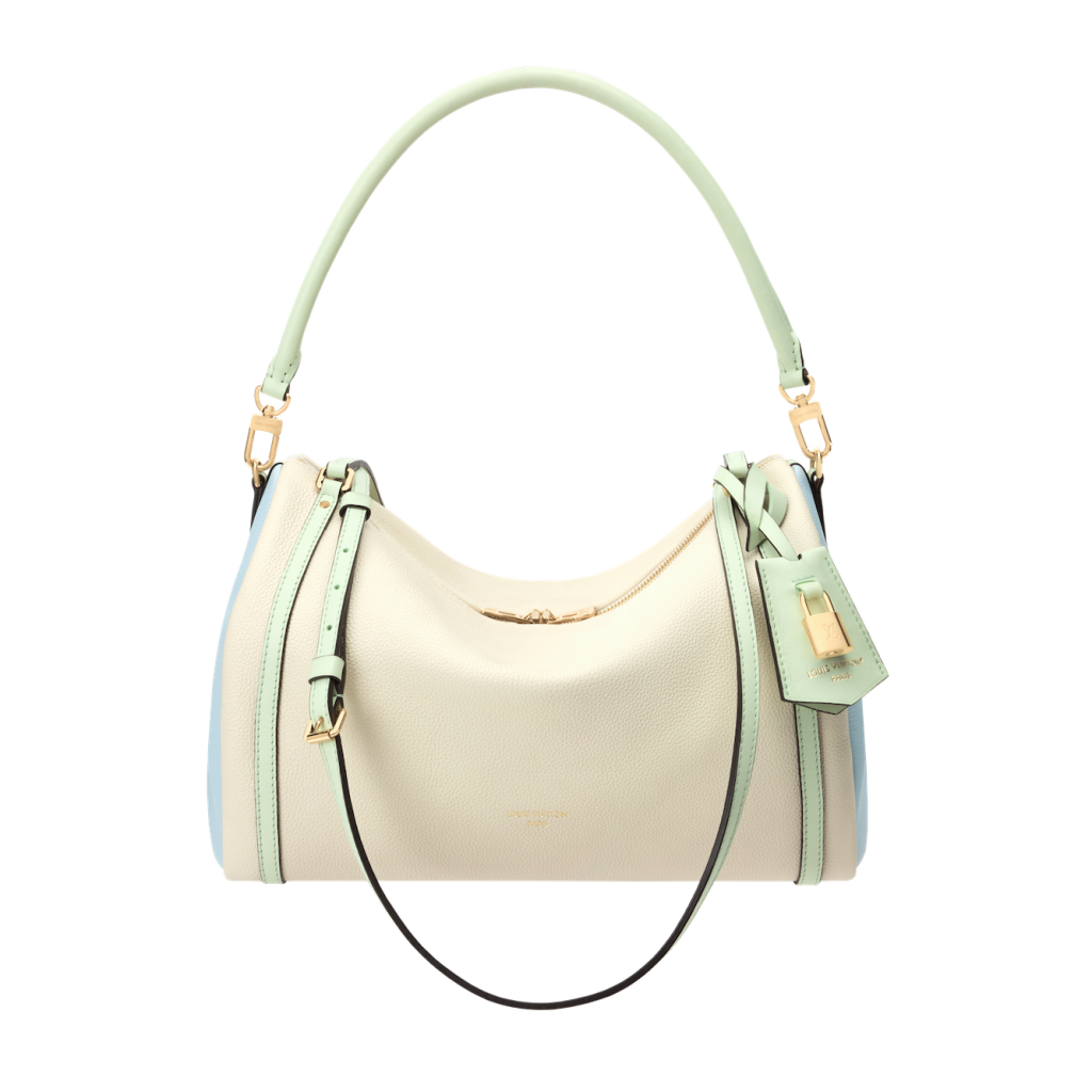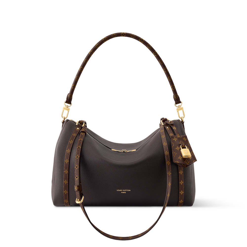 “Express”这一命名非偶然,它正是1930年代Speedy手袋最初的名字。手袋柔软灵活的廓形与贯穿包身的饰带,令人联想到经典的Keepall手袋,兼具优雅与实用之美。Express手袋采用粒面皮革与丝绒质感的小牛皮打造,凸显其廓形的永恒魅力,并融合多项路易威登经典元素:Monogram帆布装饰手柄及钥匙包,金属挂锁固定双拉链开合,内衬则为Monogram提花,细节之处尽显匠心。多功能的手柄与双肩带设计提供丰富的背携方式:手提、手挎、肩背或斜挎,呈现多样化造型的可能性。